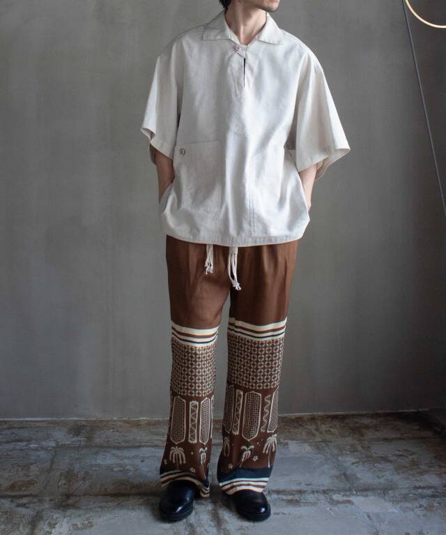 の他の商品を見るトップスの他の商品を見る素材SILK 55% LINEN 45%サイズ : 4(S)着丈 : 73cm身幅 : 63cm肩幅 : 55cm袖丈 : 25cmサイズ : 5(M)着丈 : 75cm身幅 : 65cm肩幅 : 59cm袖丈 : 26.5cm衣類の採寸は、すべて平台に平置きし、外寸を測定しております。 アイテムによっては、若干の誤差(1-2cm)がある場合がございます。 パソコンでの閲覧という特性上、商品の画像が実際の色目と多少異なる場合が有ります。 モデル:176 着用サイズ: 4 rroommオンラインストアの商品は、実店舗でも販売しております。 画面上で在庫がある状態になっている場合でもタイミングによっては在庫切れの場合もございます。予めご了承下さい。