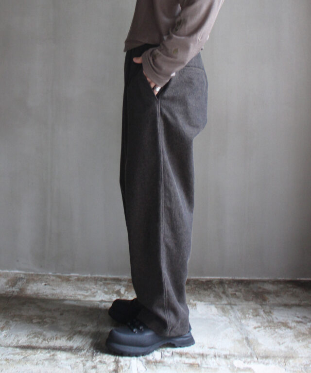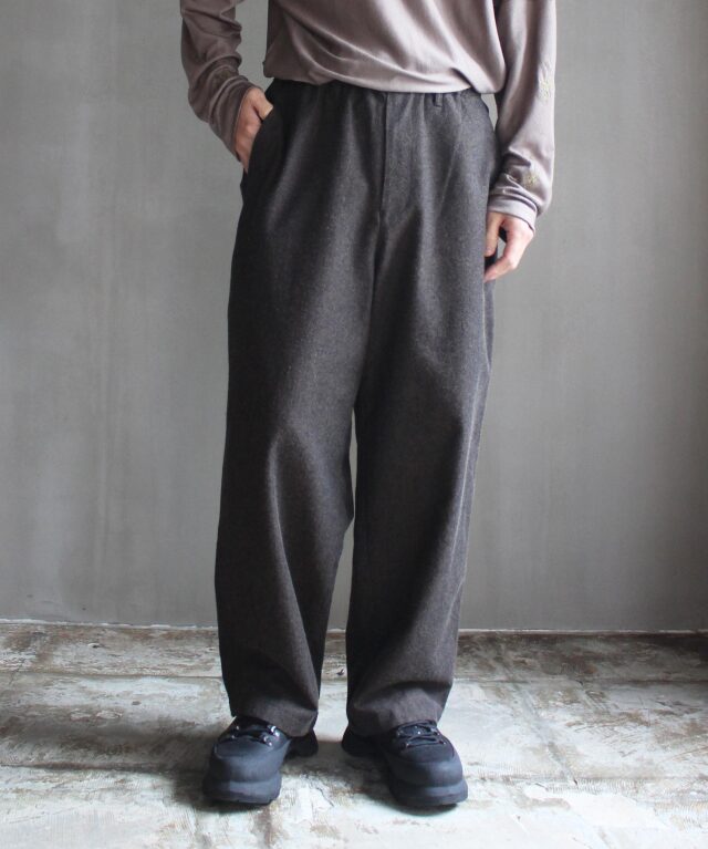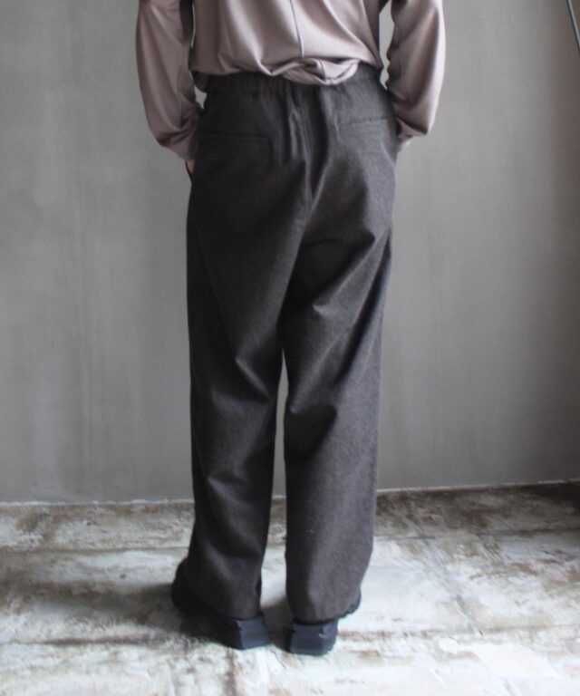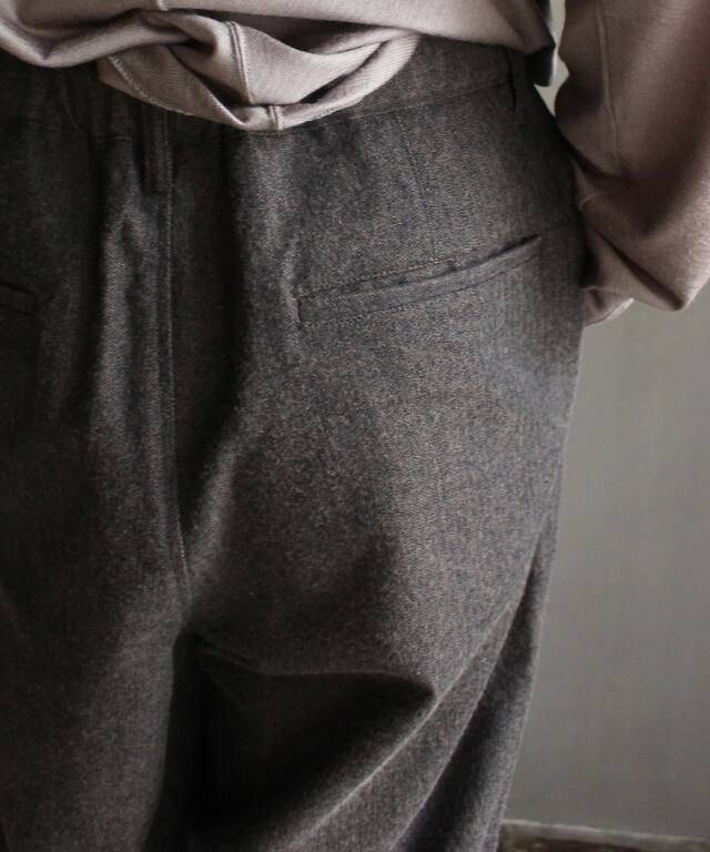 の他の商品を見るパンツの他の商品を見る素材WOOL 55% COTTON 45%サイズ : Sウエスト : 70cm股上 : 42cm股下 : 67.5cmワタリ : 35cm裾幅 : 23.5cmサイズ : Mウエスト : 72cm股上 : 43cm股下 : 69cmワタリ : 36cm裾幅 : 24cmサイズ : Lウエスト : 76cm股上 : 43.5cm股下 : 73cmワタリ : 37.5cm裾幅 : 24.5cm衣類の採寸は、すべて平台に平置きし、外寸を測定しております。 アイテムによっては、若干の誤差(1-2cm)がある場合がございます。 パソコンでの閲覧という特性上、商品の画像が実際の色目と多少異なる場合が有ります。 モデル: 176cm 着用サイズ: M rroommオンラインストアの商品は、実店舗でも販売しております。 画面上で在庫がある状態になっている場合でもタイミングによっては在庫切れの場合もございます。予めご了承下さい。