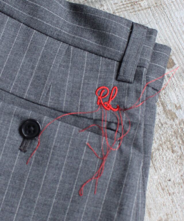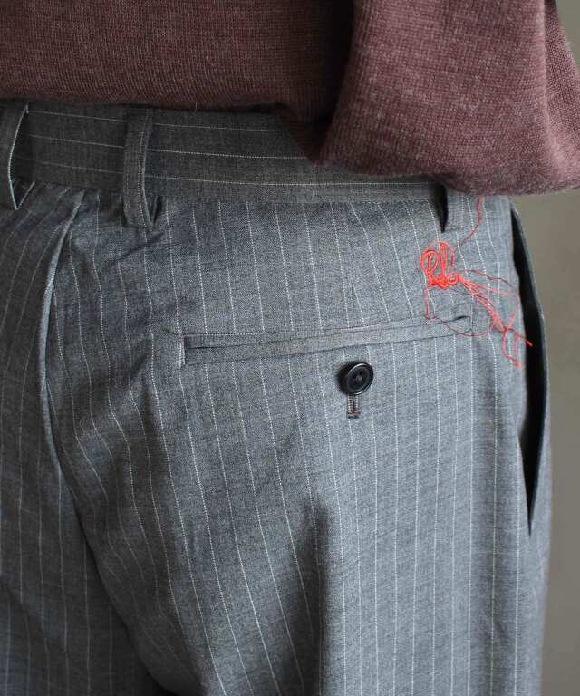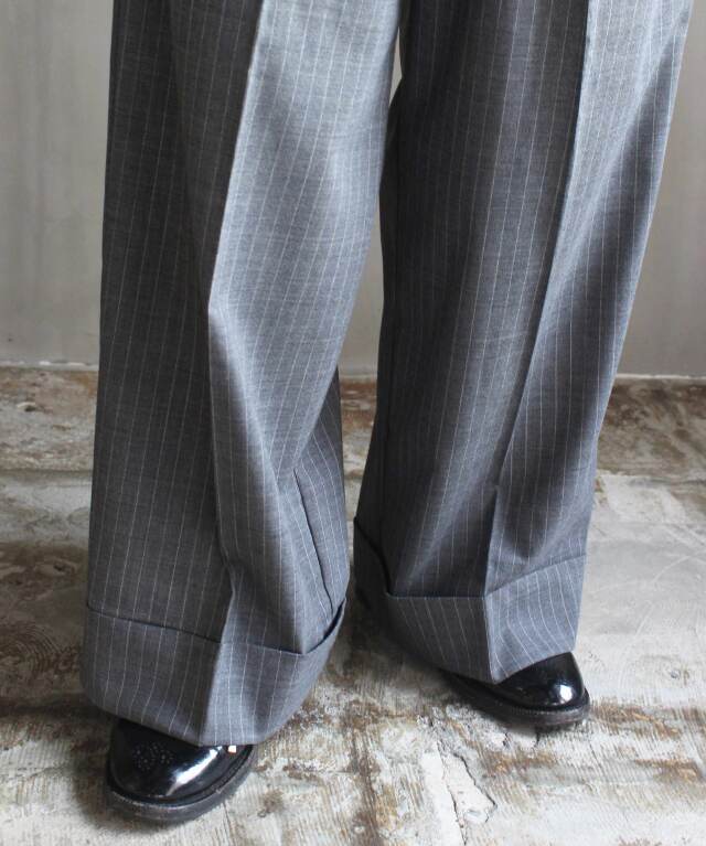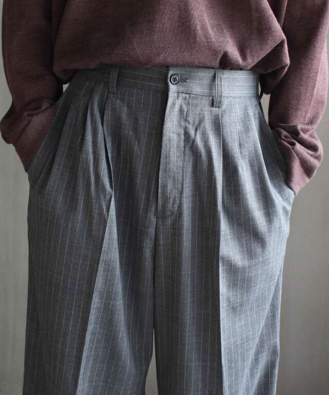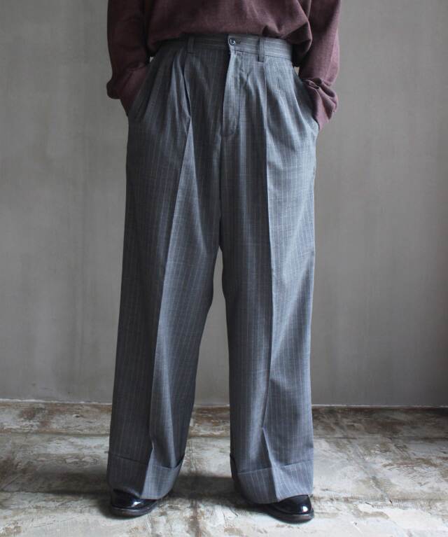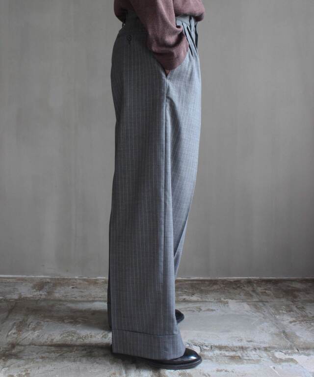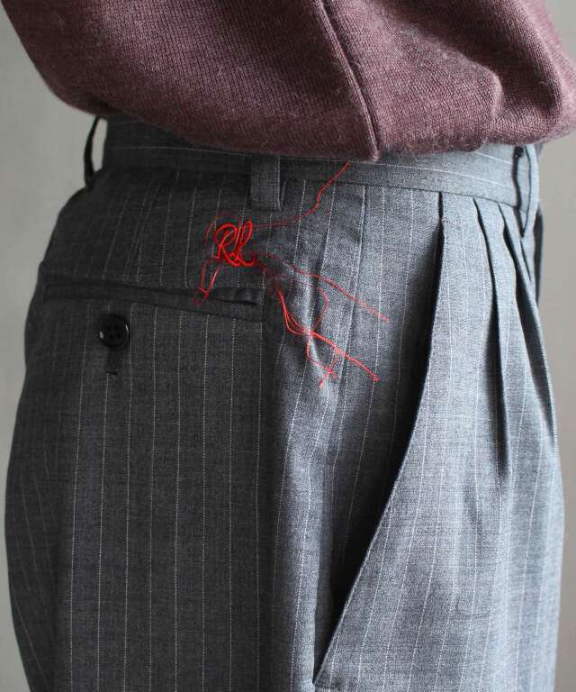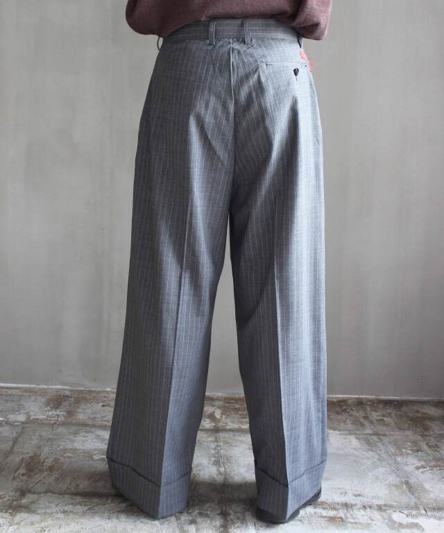 RL VB WOOL SEMI WIDE SLACKS GREY STRIPE -